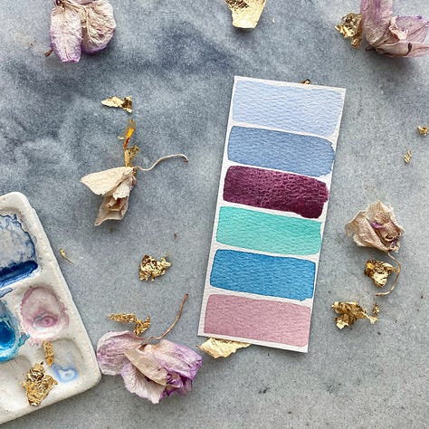 If you want to order other colors of mine that youāve seen on Insta or blog posts, Iām always available for Custom Orders. There are highlights of each palette on my IG profile as well as plenty of galleries of single colors. Curing time is the same as our Pre-Orders. If anyone wants to orders these colors in gouache, I only have 20ml available for now. If youād like 10ml let me know so I can order supplies accordingly.